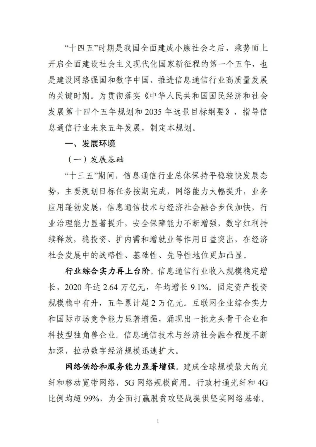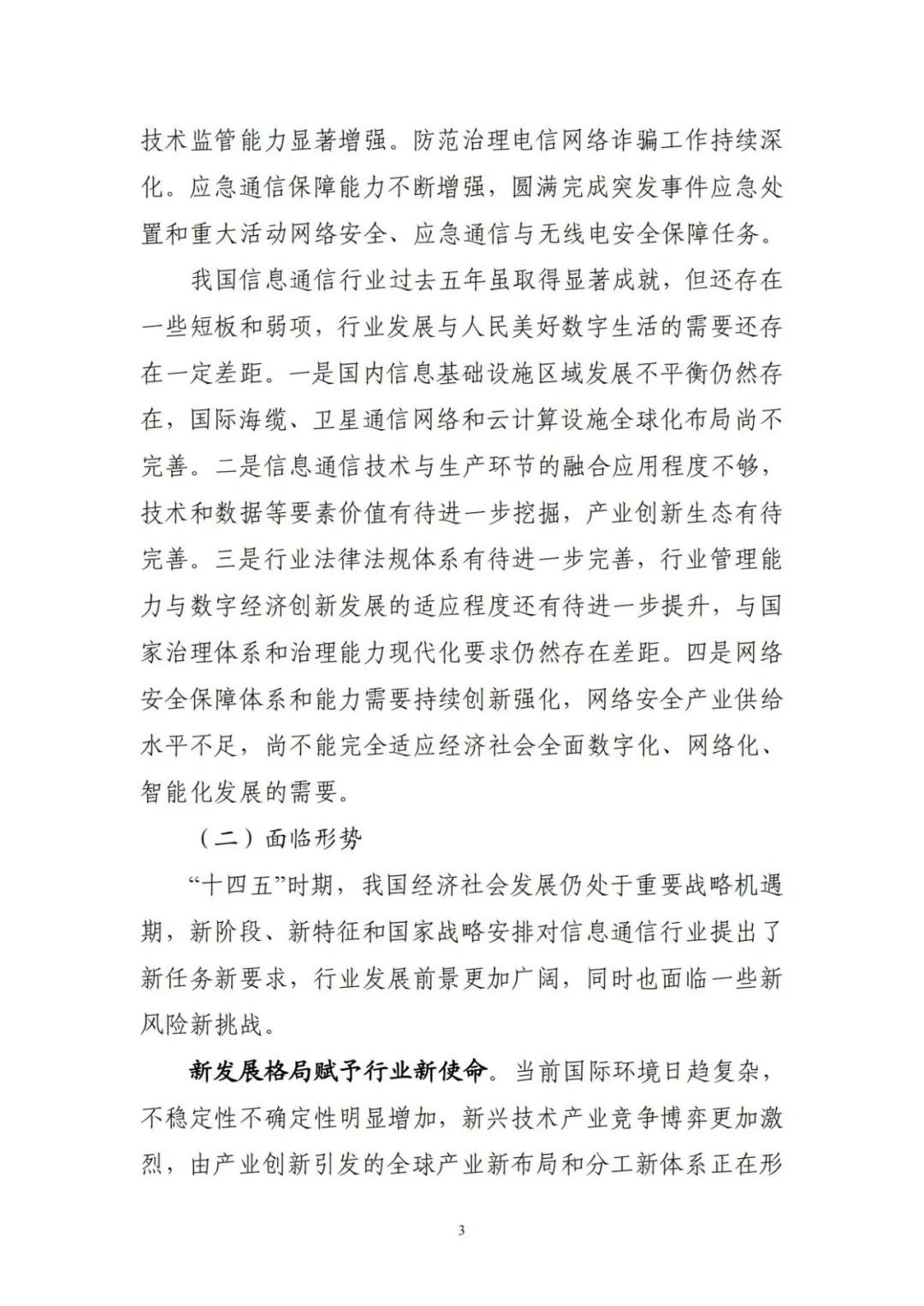 工業(yè)和信息化部關(guān)于印發(fā)“十四五”信息通信行業(yè)發(fā)展規(guī)劃的通知